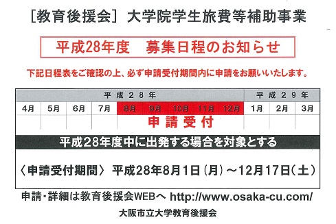 教育後援会は、このような状況を改善するため、大学院学生の学会やシンポジウム等への参加に要する費用を補助し、